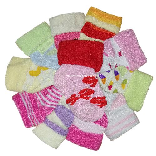 В упаковке 12 пар одного размера, разного рисунка и цвета.