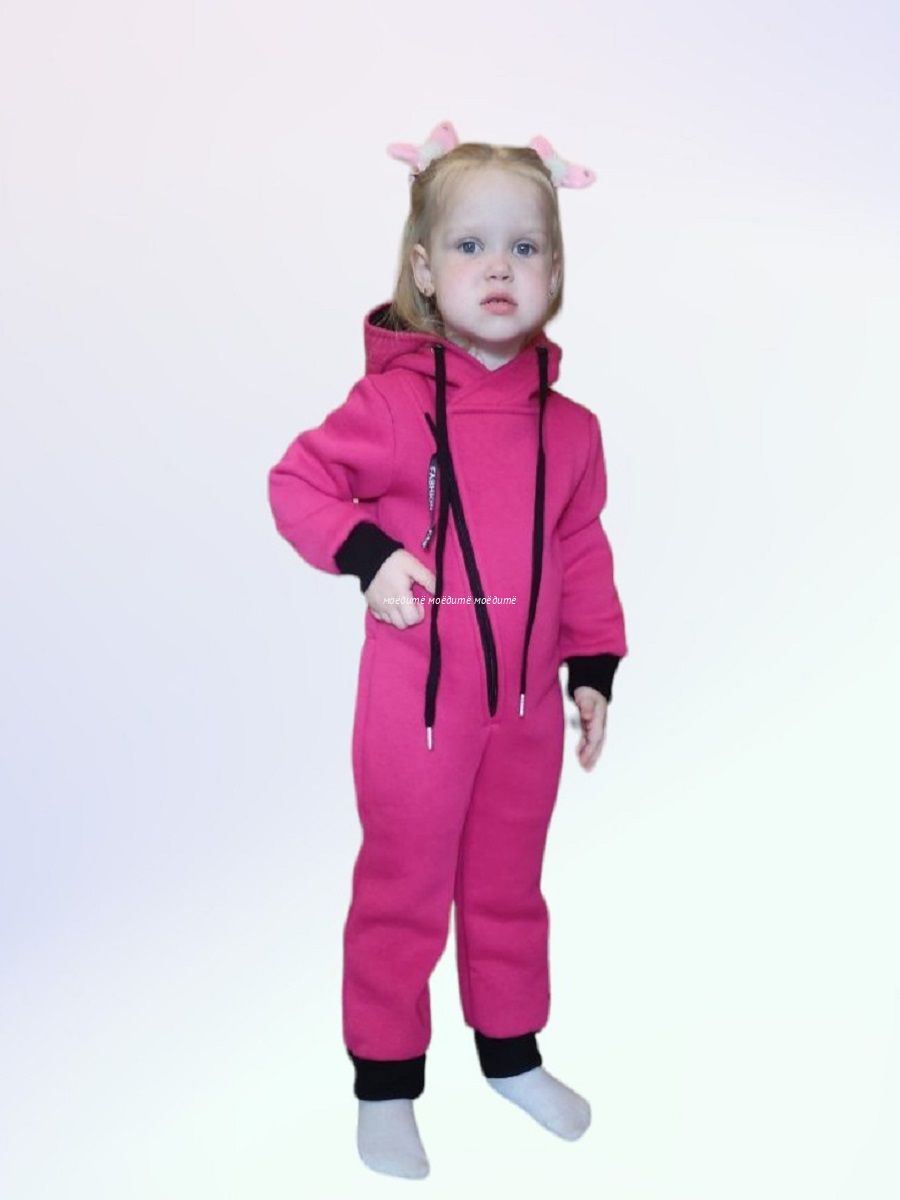 Комбинезон с капюшоном, с открытыми ножками, застёжка на молнии. Капюшон на подкладке, декорирован шнурком.